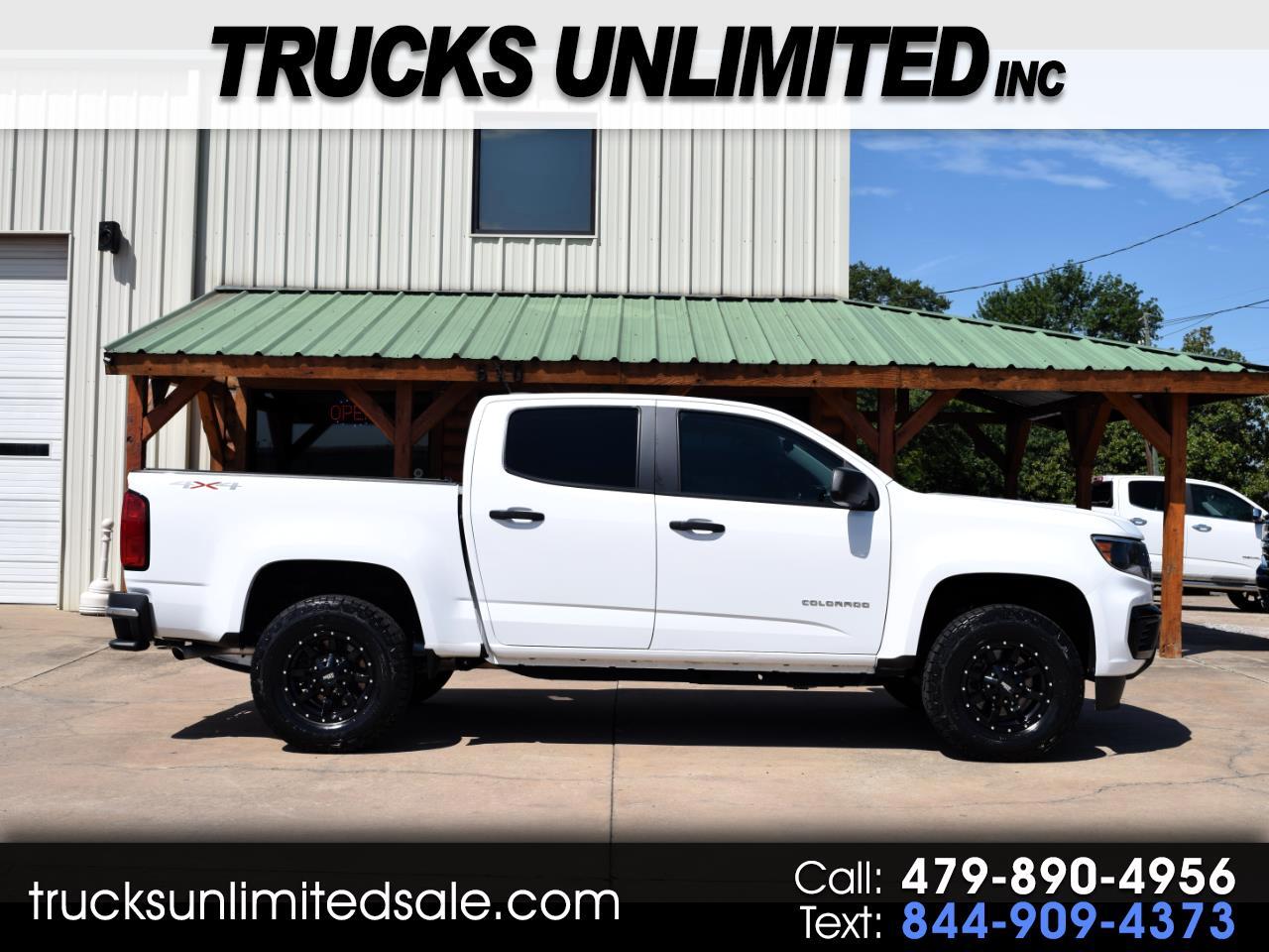 4WD***LEVEL KIT***NEW ALOYS***NEW TIRES***POWER WINDOWS/LOCKS***POWER SEAT***BACK UP CAMERA***BLUETOOTH***REV HARD COVER FOLDING BED COVER***SPRAY IN BEDLINER***TOW PACKAGE***CLEAN CAR FAX!! This 2021 Chevrolet Colorado Crew Cab 4WD will turn heads everywhere it goes and needs nothing but a new proud owner! Don't delay on the nicest 2021 Chevrolet Colorado Crew Cab 4x4 in this price range and let it get away! Pre-sale inspected so that you can buy with confidence and as-always we guarantee the best prices anywhere! We have many lenders for ALL types of credit and can help you get financing by phone or online in minutes! We offer LOW cost ZERO deductible warranties to give you an extra PEACE of mind as well. Call today for no hassle assistance and let us help you save time and money here at Trucks Unlimited Inc. in Russellville, Arkansas! LIKE US ON FACEBOOK